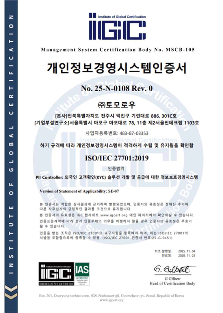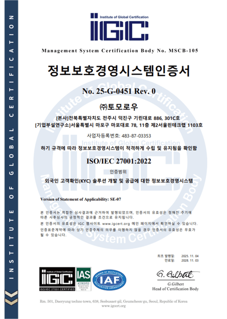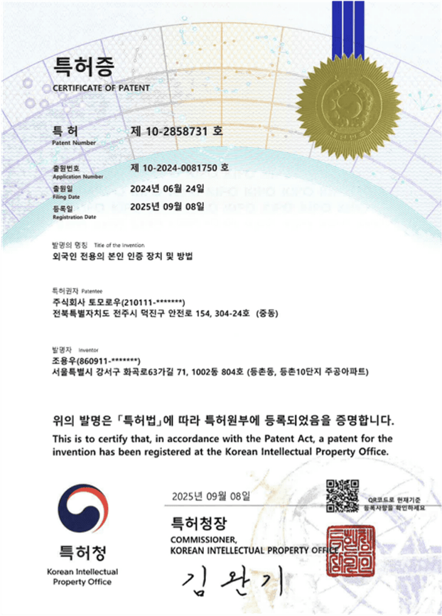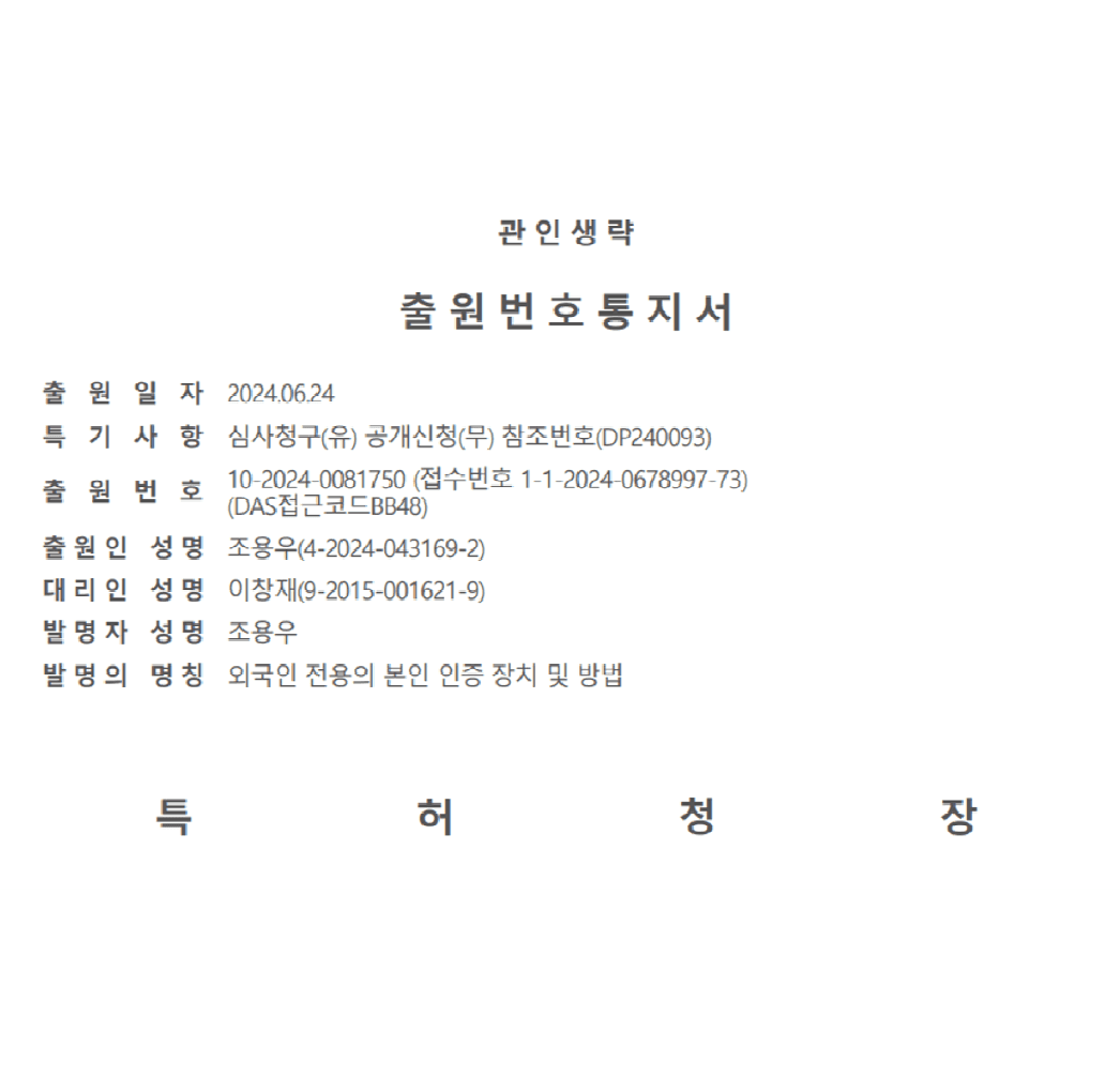 명칭 : 외국인 전용의 본인 인증 장치 및 방법