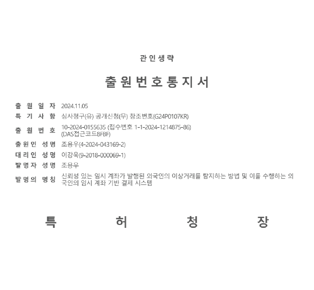 명칭 : 신뢰성 있는 임시 계좌가 발행된 외국인의 이상거래를 탐지하는 방법 및 이를 수행하는 외국인의 임시 계좌 기반 결제 시스템